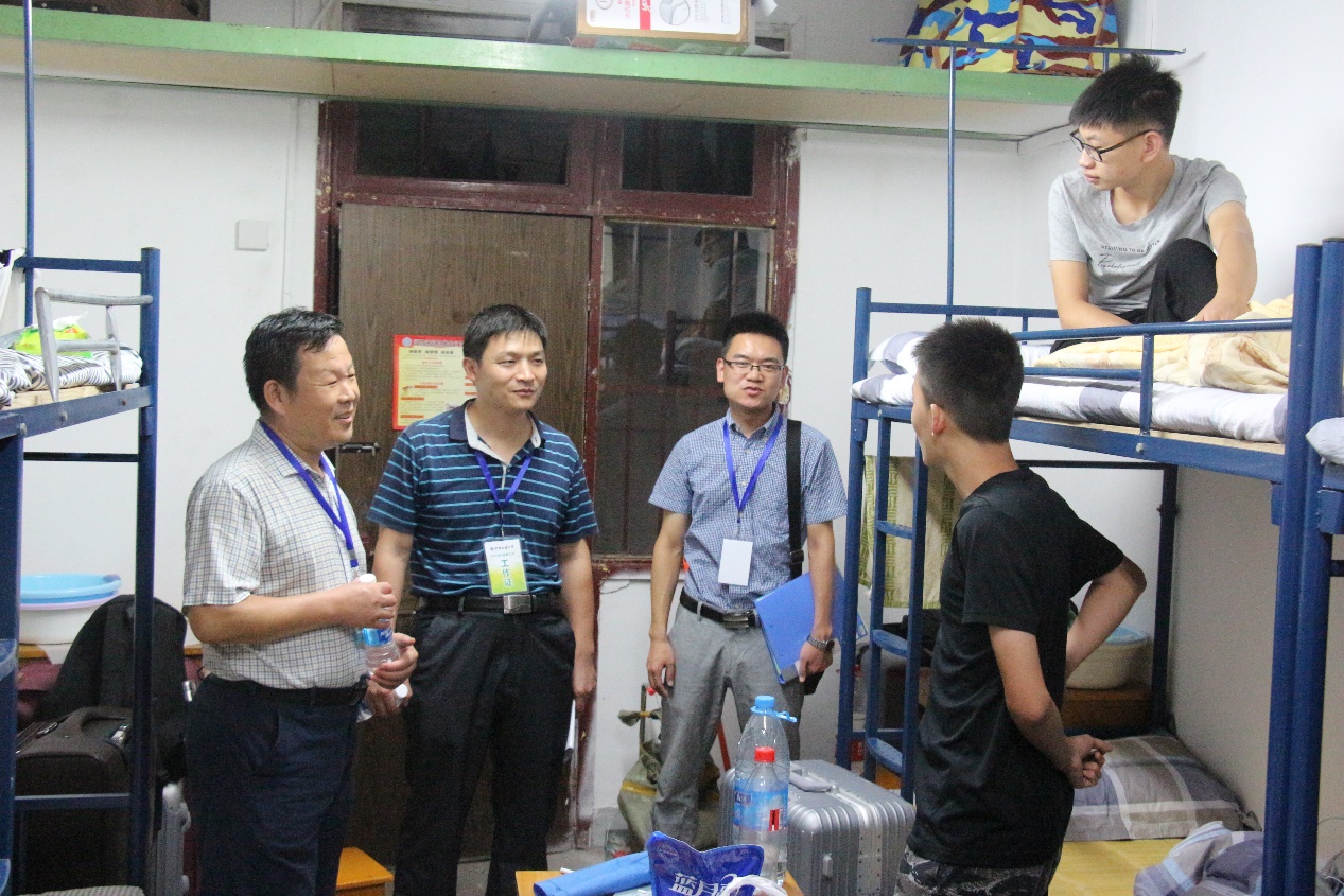 公司领导非常关心新生到校情况,多次到迎新点了解迎新进度,并带队走访新生宿舍。公司党委书记刘子忠、副书记李周波与2018级新生辅导员祁阳阳于9月2日下午4点一同到新生宿舍看望新生,与同学们进行了亲切的交谈。刘书记十分关心同学们到校后的适应情况,详细询问了同学们来校后的饮食、就寝、出行等生活情况,嘱咐新生们珍惜老员工活,努力学习。