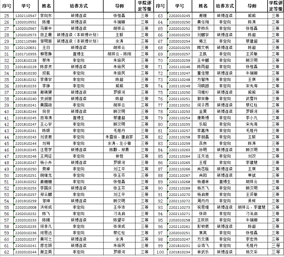本公示中的评定等级为博士奖助学金中的公司学业助学金等级,学业奖学金及国家助学金部分不分等级,根据公司发布的参评条件及资助对象要求,符合相关条件的同学均获评。