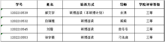 10月24日研究生院公布了《2022年硕博连读研究生选拔结果公告》,公司4名2022级硕士研究生被批准为公司2022年硕博连读研究生,符合博士生学业助学金参评资格,经个人申请、材料审核及公司评审,现将推荐名单进行公示: