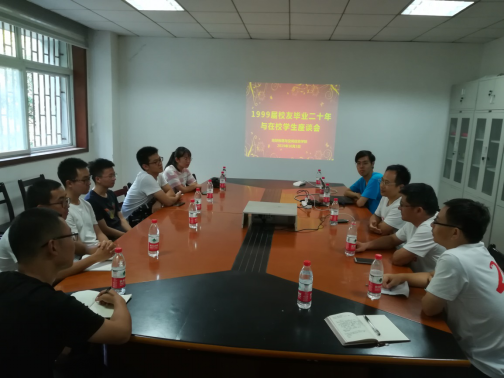 10月3日下午2点,毕业20周年返校聚会员工与员工座谈会在物探楼216会议室顺利举行,侯卫生、罗小波、俞国柱和王传宝等4位员工与部分在校生进行了交流。
