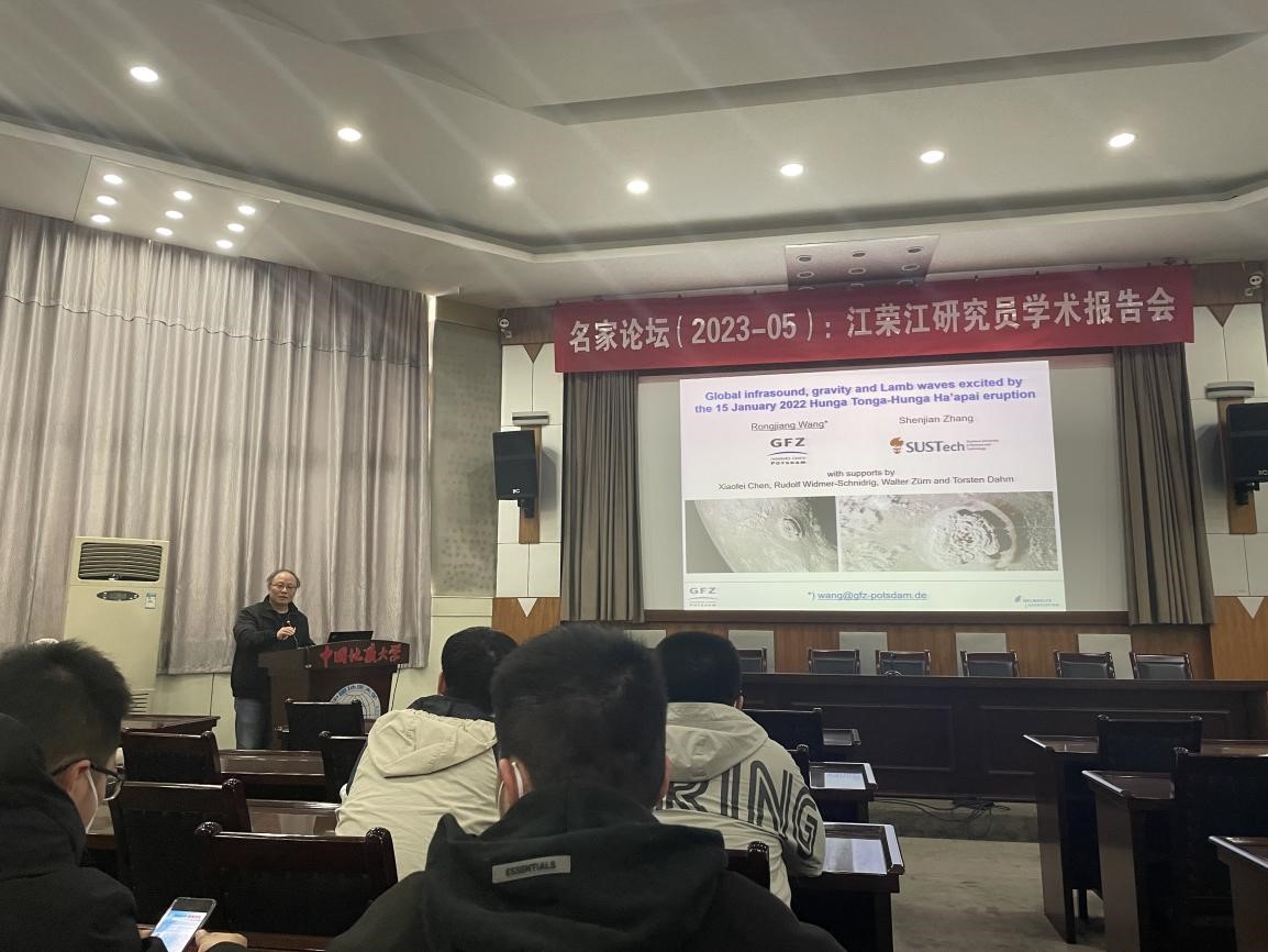 (通讯员 郑勇)应英国365集团网站“名家论坛”和英国365集团网站熊熊教授、胡祥云教授邀请,德国地学中心(GFZ)资深研究员国际著名地球物理学家汪荣江教授于2023年3月17日来校访问,在地质大学东区八角楼学术报告厅以“2022年1月15日汤加火山爆发引起的全球大气次声波、重力波和Lamb波”为题做了精彩的学术报告。