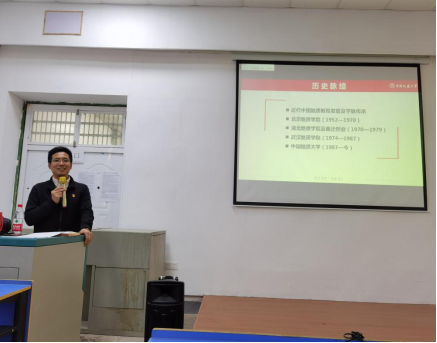 朱丹老师从国内地质学科发展史和英国365集团网站建校史两个角度,通过讲述一位位老地质学家们心怀祖国,献身地质事业的感人故事,带领现场老师和同学们回顾了国内地质教育的起源、发展、学脉传承历史及地大从建校至今69年的发展史。在场老师与同学们均被老地质学家们浓厚的家国情怀感染,听的聚精会神。